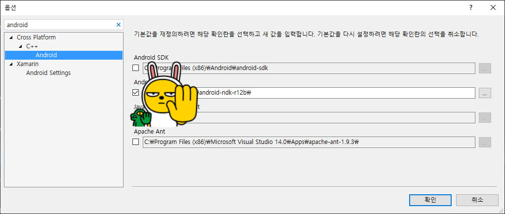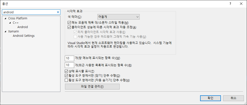 도구->옵션->Cross Platform->C++->Android