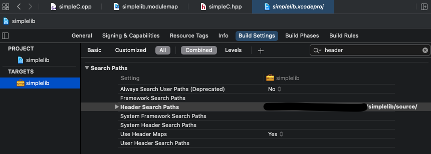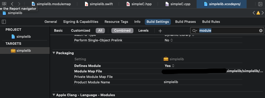 simplelib.modulemap setting